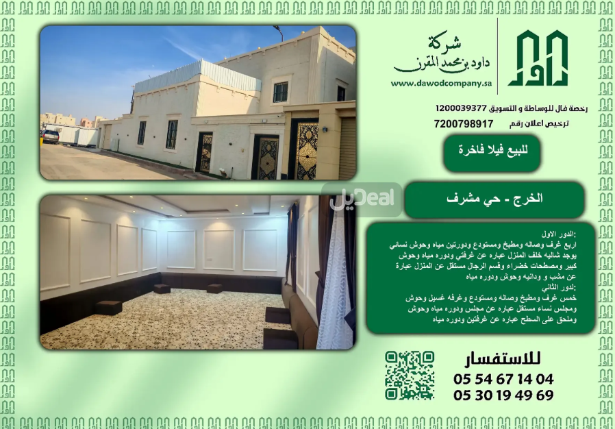 للبيع فيلا فاخرة – الخرج حي مشرف